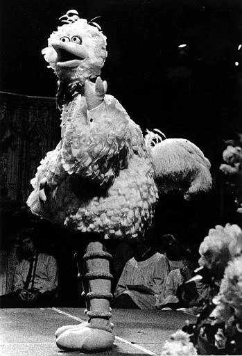 Big Bird walking down the cathedral aisle in New York