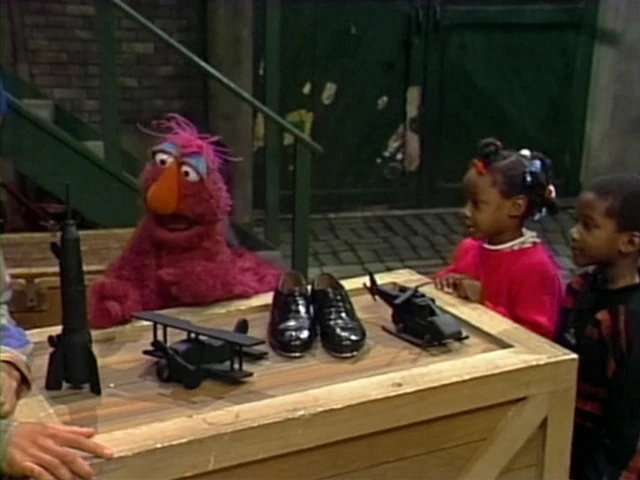 | Telly, Savion, and Kids | Episode 3197 | A toy rocket ship, a pair of tap-shoes, a toy airplane, and a toy helicopter. | Three of These Things | |