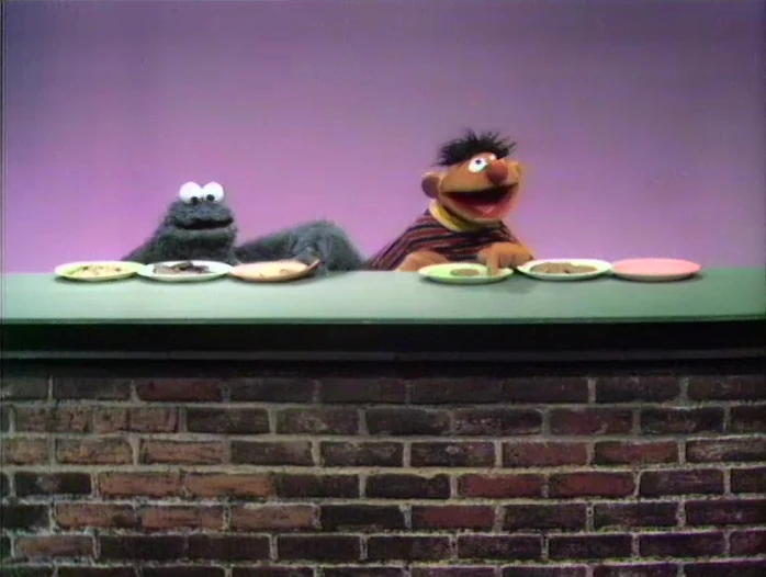 | Cookie Monster and Ernie | Episode 3943 | A hamburger, a cookie, pizza and a fajita | Three of These Things | |