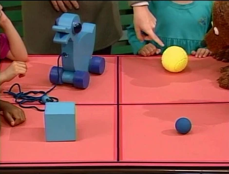 | Gina, Kids, Elmo and Baby Bear | Episode 3410 | A blue ball, a yellow ball, a blue pull-duck, and a blue block. | One of These Things | |