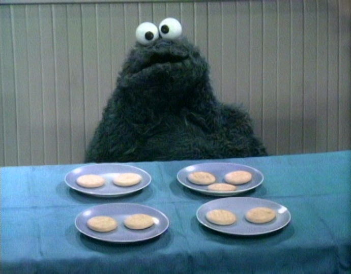 | Cookie Monster | Episode 3008 | Number of cookies on each plate | One of These Things | |